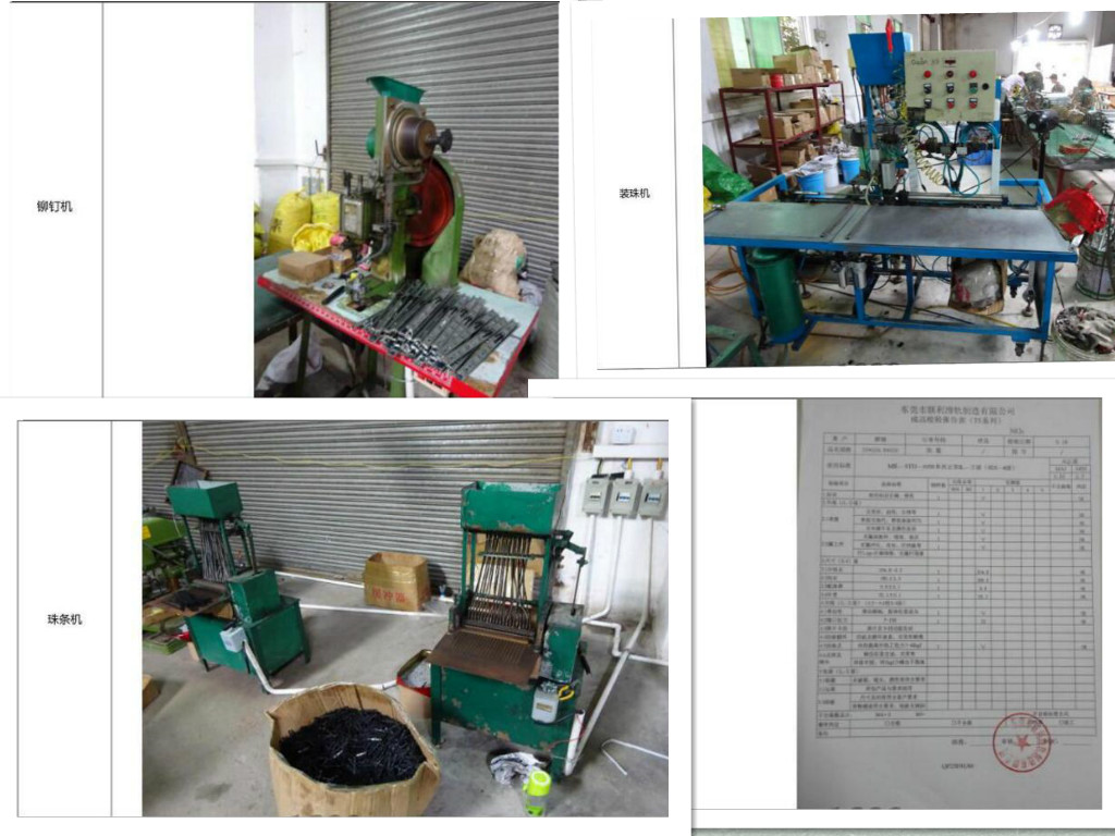 聯(lián)利滑軌(三節(jié)滑軌)的組裝流程是用鉚釘機(jī)裝可拆卸的塑料件(也叫小鳥件,滑軌在拆卸分離的主要配件),接著中軌和珠糟使用裝機(jī)機(jī)組裝,只需要人工把中軌和珠糟放在裝珠機(jī)的固定位置,裝珠機(jī)會自動組裝好,中軌和珠糟之間的潤滑油也是這個時候已經(jīng)涂好,(潤滑油起到潤滑、輔助冷卻等作用,滑軌有鋼珠的地方都會涂上潤滑油,可以使滑軌推拉更順暢)而外軌和中軌之間滑動的是靠兩邊的塑料珠條來滑動的,塑料珠條和鋼珠的組裝是用珠條機(jī)完成的,機(jī)器成型珠條鋼珠,鋼珠更加牢固,不會出現(xiàn)掉珠的情況。以上組裝主要是靠機(jī)器完成的,接下來就到了人工組裝環(huán)節(jié),把中軌和內(nèi)軌對準(zhǔn)推進(jìn)去,然后我們把塑膠珠條放在外軌內(nèi)側(cè),一邊一條,這個時候需要人工涂潤滑油涂在塑膠珠條上,再把已經(jīng)組裝的中軌對準(zhǔn)外軌推進(jìn)去,滑軌的外、中、內(nèi)軌就組裝完成了,最后,把檔膠和卡扣裝上去,檔膠是起到滑軌關(guān)閉時候有卡住的功能,卡扣是防止中軌珠糟在推拉的時候掉出?;壢拷M裝成功后,人工再推拉幾次滑軌,滑軌推拉順暢就代表滑軌組裝沒有問題。