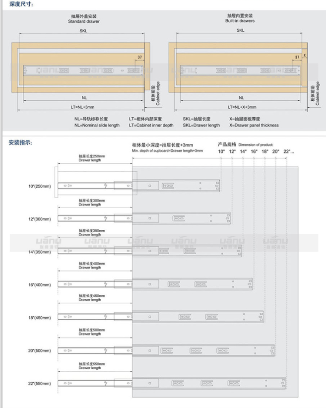 時(shí)間: 2017-11-11 14:47:05 來源: 東莞市聯(lián)利滑軌制造有限公司怎么計(jì)算滑軌尺寸?這個(gè)問題是聯(lián)利客服在客戶詢盤中經(jīng)常會(huì)遇到的問題。在生產(chǎn)家具時(shí),先做好柜體和抽屜再選擇滑軌,而不會(huì)先購買滑軌,再做柜體和抽屜,當(dāng)知道了柜體的深度和抽屜長(zhǎng)度時(shí),我們就可以計(jì)算滑軌尺寸了,例如:柜體和抽屜的深度是500mm的時(shí)候,滑軌尺寸應(yīng)該選擇450mm長(zhǎng)的滑軌就可以,滑軌的長(zhǎng)度可以適當(dāng)比柜體和抽屜的深度淺一點(diǎn),當(dāng)柜體和抽屜的深度是500mm的時(shí)候,滑軌若是用了550mm長(zhǎng)的,就會(huì)長(zhǎng)出來無法安裝。